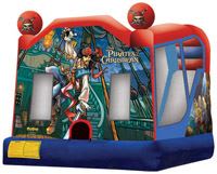 This licensed combo jumper brings buccaneer adventures to any swashbuckling affair, courtesy of the Pirates of the Caribbean. Players can fantasize of sailing the high seas on the Black Pearl and singing "Yo ho ho" with Captain Jack Sparrow, William Turner and Elizabeth Swan in this exciting combo jumper. Kids have a choice of several action-packed activities, and can escape from any pirate's clutches on the dry slide! Part of a popular line of licensed Pirates of the Caribbean jumps and combos, this combo jumper is sure to bring entertainment to any salty sea dog!