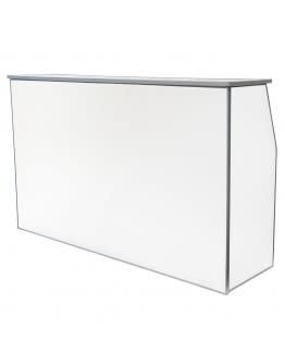 Great portable bar rental for all event types. Sleek and elegant design can be used for most formal or informal events. Two tiers and floor space provide adequate amounts of storage for alcohol, glassware, and other bar accessories. This is a great bar for quick and easy set up, just about anywhere. The side panels are hinged for easy removal and the top and middle shelf are removable. The laminate surface makes for quick and easy clean up.