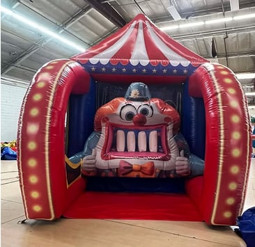 NEW for 2026! Meet the Clown Tooth Knockout, the newest addition to Beringers Party Rentals Carnival Game inflatables. This colorful, eye-catching inflatable draws guests in for a fun challenge. Players toss bean bags to knock out all four clown teeth. Can you clear them all in a single turn?