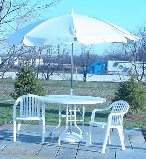 Choose from two sizes of round tables that can be used with market umbrellas: 48″ and 60″. Umbrella tables require the umbrella, table, and solid weighted base, which is included with the rental.